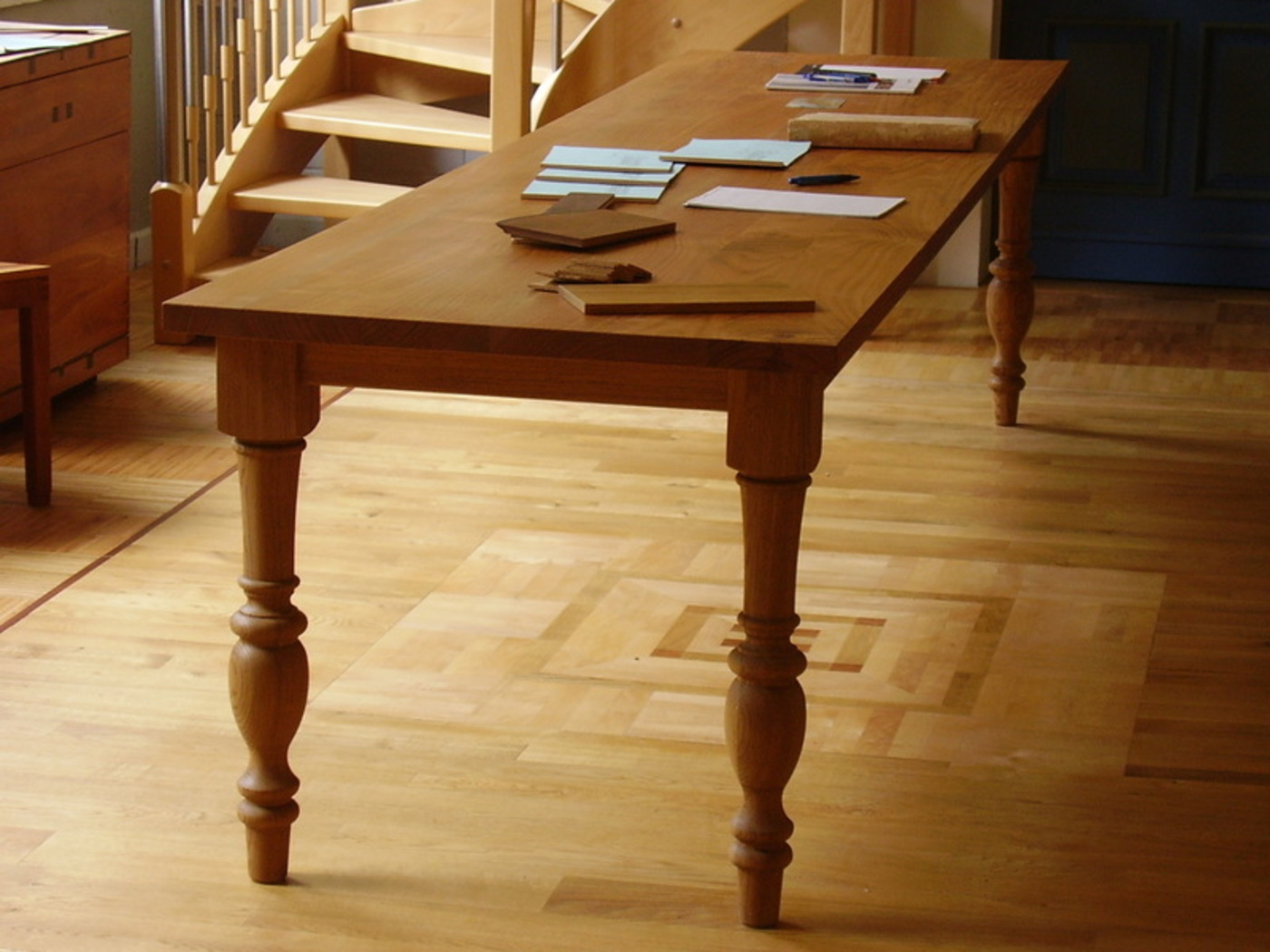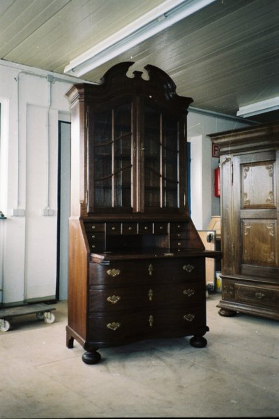 Diverse møbler og innredning spisebord i eik og kirsebær, ca 3000 x 850 mm inngangsdører for en jernbarnstasjon fra 1927 inngansgdører jernbarnstasjon, kopi av dører med originalsprosseprofiler kabinetskap i eik, kopi av en original fra 1880, med buende skuffer og såkalt tangehode -profil på toppen bokhylle i bøk heltre, spesialtilpasset ... med mange fine detaljer og praktiske skuffer plassen i skuffene er nok for hele familien Vi kontakter deg Legg igjen telefonnummeret ditt, så ringer vi deg opp.